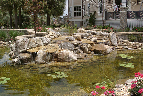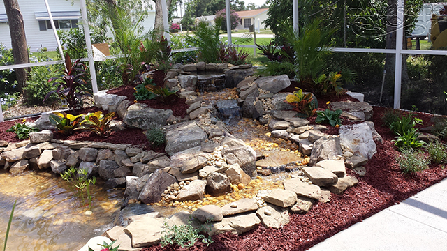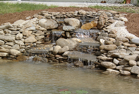 BioFalls - A revolutionary biological filter that when installed becomes a waterfall. This camouflaged unit with various filtration units including three pads, bags of lava rocks and an area for floating marginal plants is very effective at filtering the water. This leak proof unit will never crack like some fiberglass units.